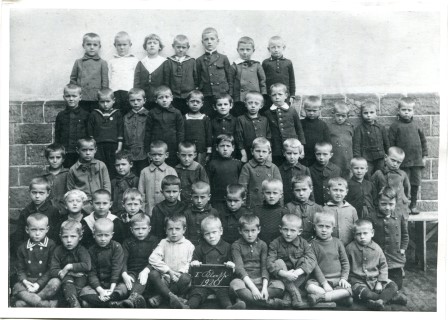Zwei Jahre nach Kriegsende Erster Weltkrieg wird Heinrich in die 1. Klasse der Volkschule in Landstuhl eingeschult. Auf dem Bild steht er in der 2. Reihe von oben als Dritter von links.