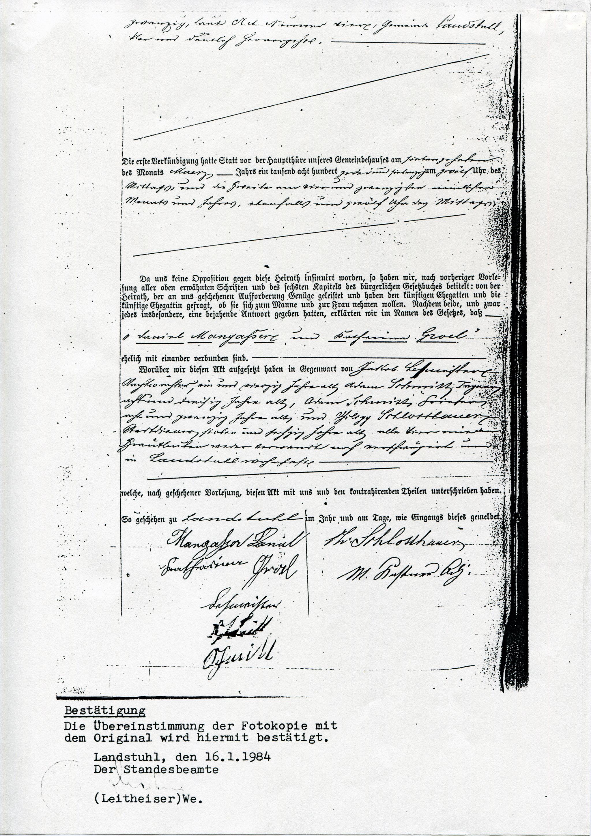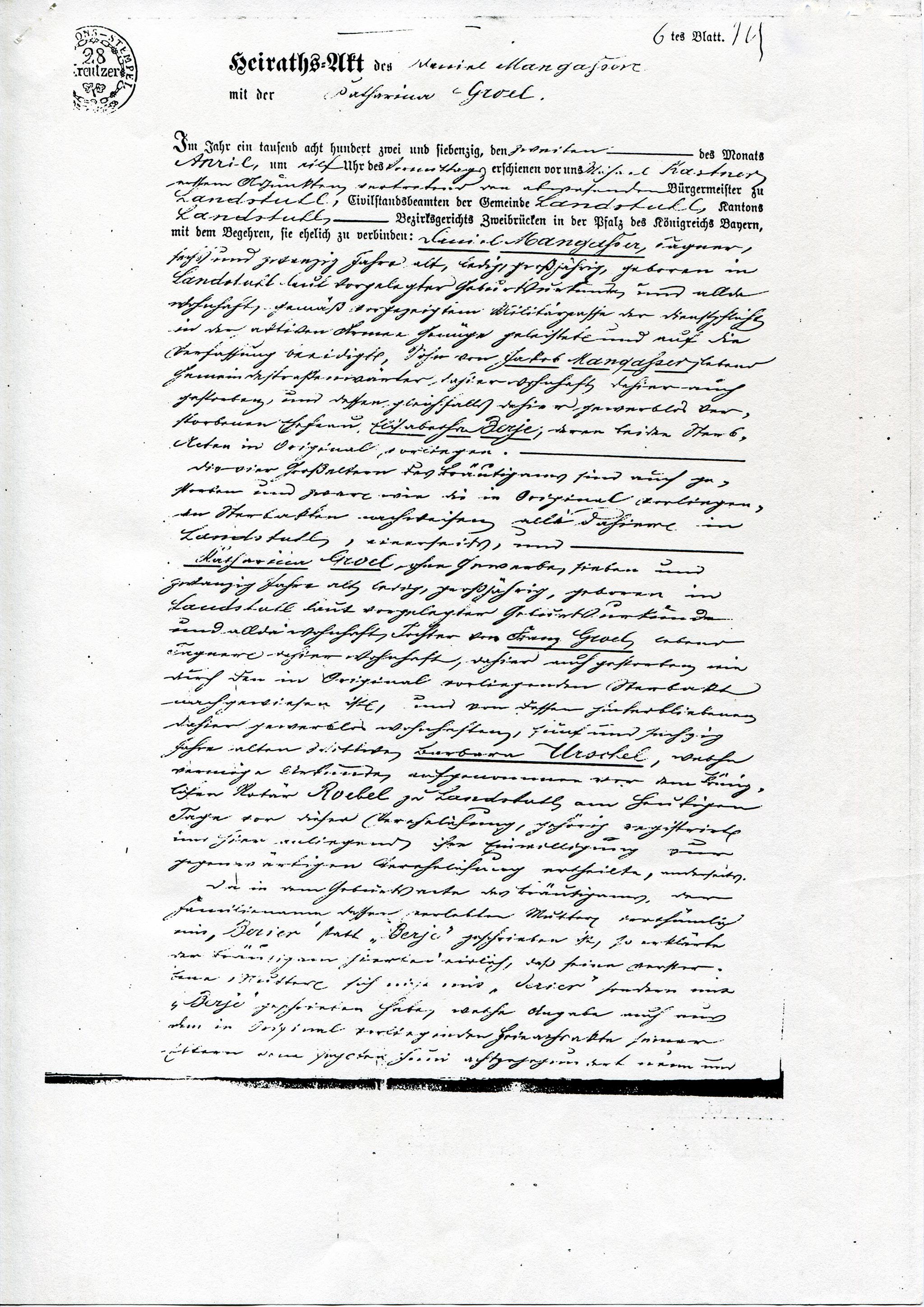 Die beiden heiraten am 02. April 1872 in Landstuhl