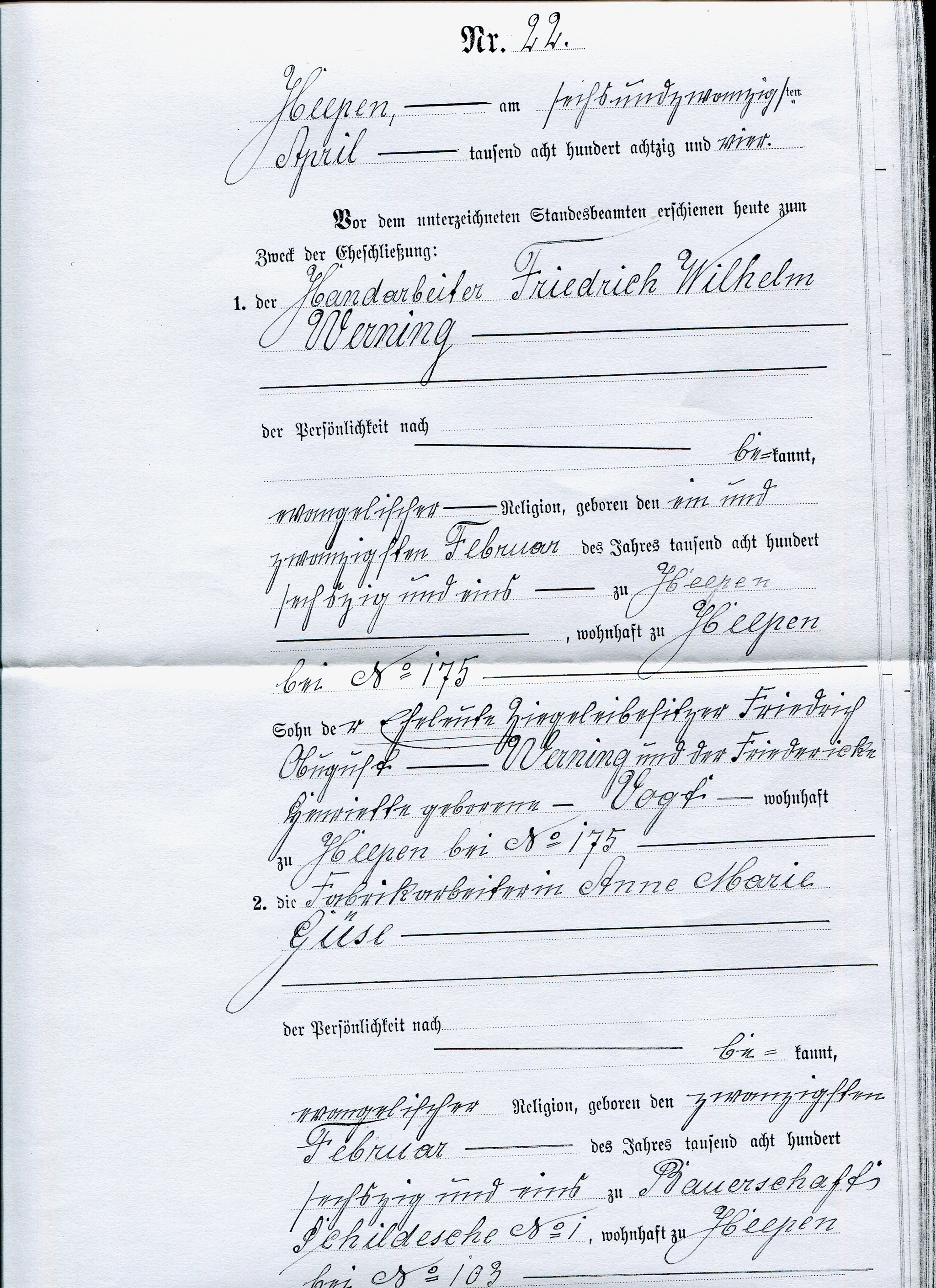 Sie heiraten am 25. April 1884 in Bielefeld-Heepen.