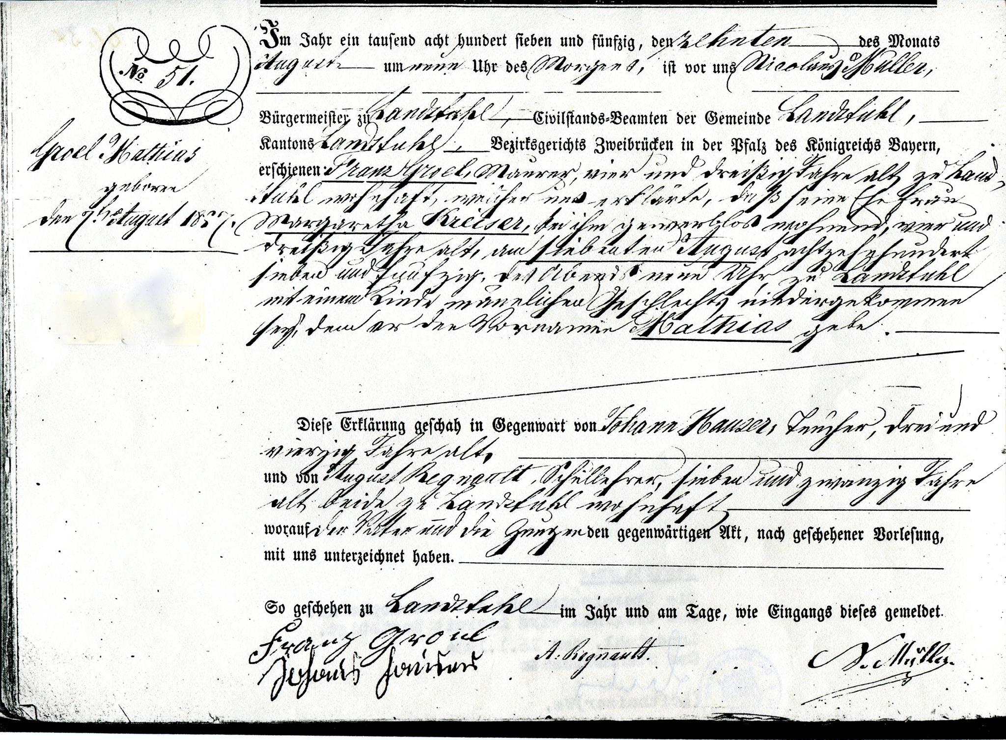 Matthias Groel wird am 09. August 1857 als Sohn von Franz Groel und Margaretha Kreiser in Landstuhl geboren