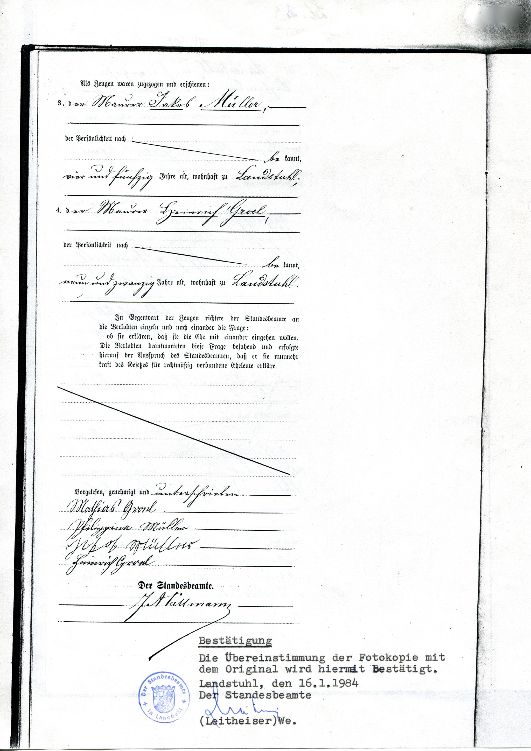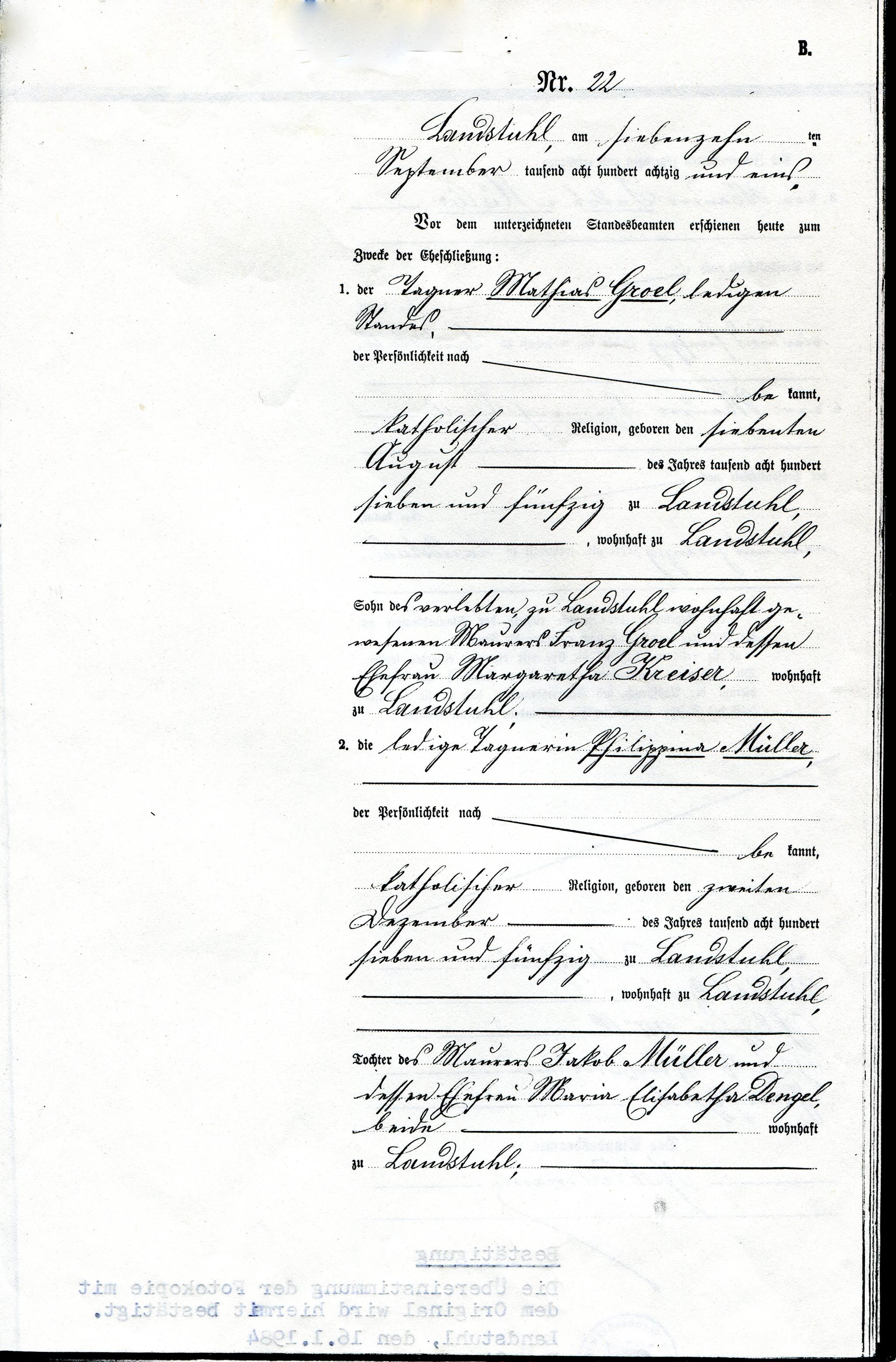 Die beiden heiraten am 17. September 1881 in Landstuhl