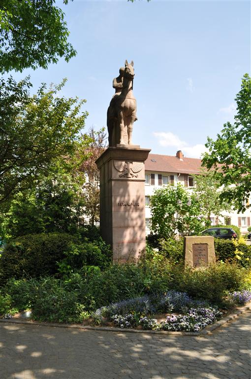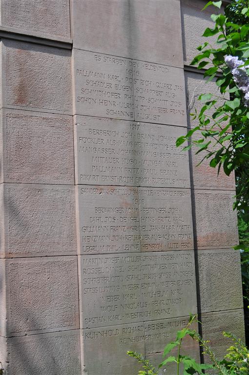 "Bei Ausbruch des Weltkrieges im Jahre 1914, und in den folgenden Kriegsjahren, in denen Deutschland gegen eine Welt von Feinden zu kämpfen hatte, zogen Landstuhls tapfere Söhne in den Krieg um ihr Vaterland, ihre Heimat zu verteidigen. Große Opfer forderte das Völkerringen. Nach Beendigung des Krieges im Jahr 1918 hatte die Stadt Landstuhl den Verlust von 121 ihrer besten Söhne zu beklagen. Ihre Dankesschuld den tapferen Helden abzutragen war eine stete Sorge der Stadt. Als sichtbarer Ausdruck sollte ein Ehrenmal errichtet werden. Zur Gewinnung der gesamten Bürgerschaft für das Denkmalswerk fand am 22. Juni 1928 im Saale von Jean Ernst dahier erstmals eine öffentliche Versammlung unter dem Vorsitze des 1. Bürgermeisters der Stadt Landstuhl, Herrn Hans Schichting statt, in welcher die Gemeinschaft zur Errichtung eines Kriegerdenkmals in Landstuhl gebildet und ein Arbeitsauschuß gewählt wurde. In zahlreichen Sitzungen wurde die Denkmalssache eingehend behandelt und vorbereitet. Durch eine rege Sammeltätigkeit waren gegen das Ende des Jahres 1932 der Betrag von 10000 Reichsmark aufgebracht"
