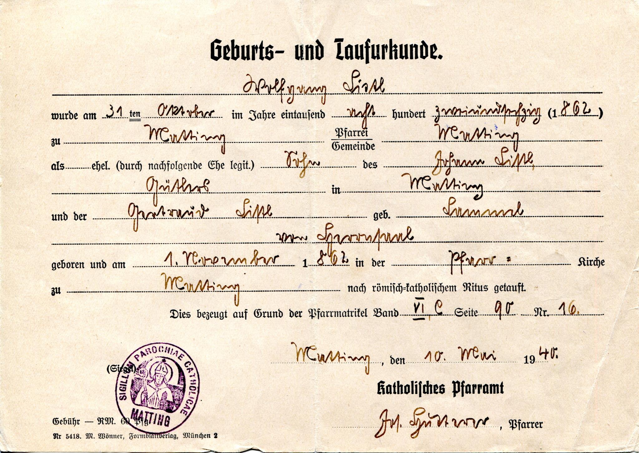Wolfgang Listl wurde am 31. Oktober 1862 in Matting als Sohn von Johann Listl und Gertrud Lammel geboren.