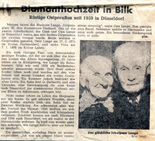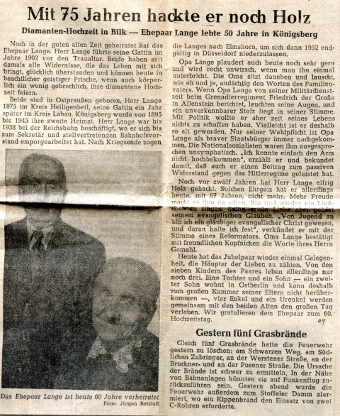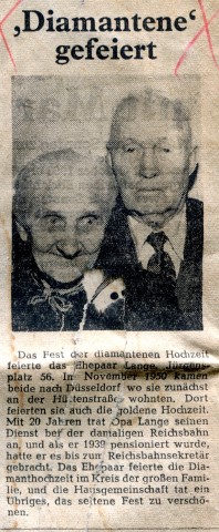 Presseartikel Diamantene Hochzeit Lange
